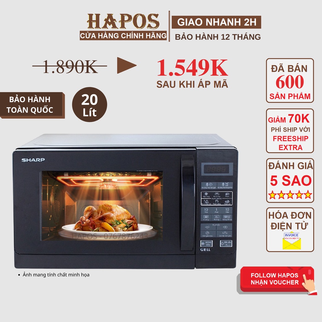 Miễn phí đổi trả nếu bán hàng kém chất lượng. Hiện tại [Mã 11ELSALE hoàn 7% đơn 300K] Lò vi sóng điện tử Sharp có nướng 20 Lít - HAPOS phân phối chính hãng đang được giảm giá chỉ còn 1,524,270đ. Số lượng có hạn hãy nhanh tay đặt khi còn hàng bạn nhé