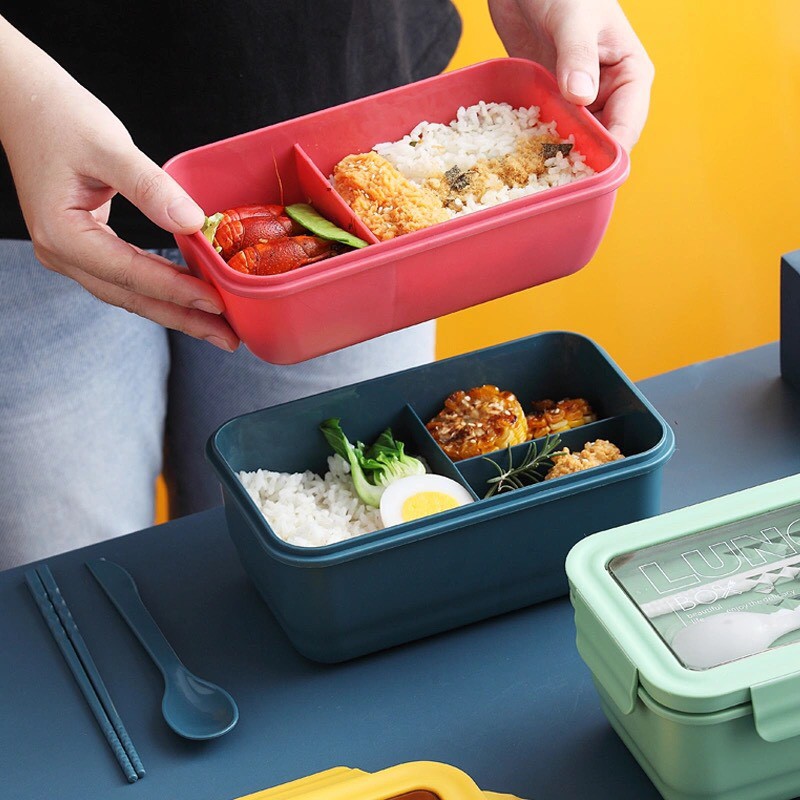 Hộp Đựng Cơm Lúa Mạch 3 Ngăn Hộp Cơm Văn Phòng Tiện Lợi Dễ Dàng Sử Dụng (tặng kèm thìa và đũa)