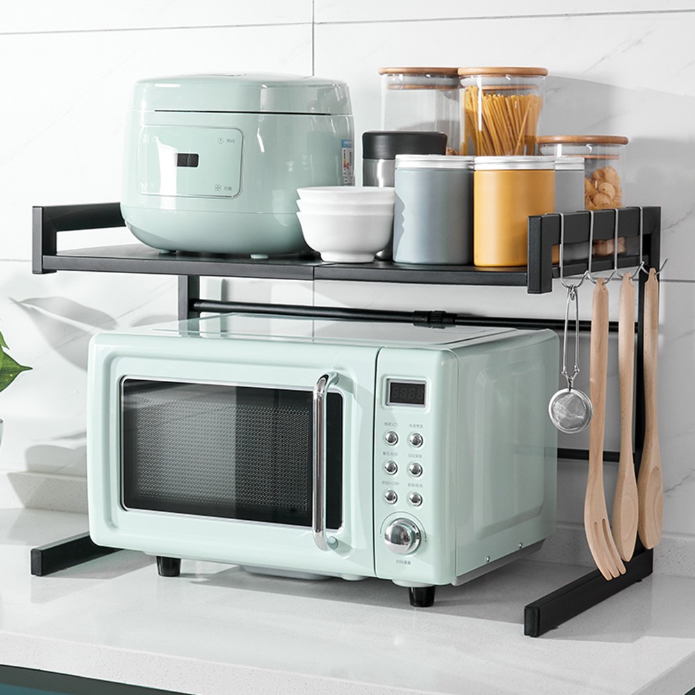 Kệ lò vi sóng 2 tầng tự thay đổi kích thước để được lò nướng lên trên tầng 2 tiết kiệm diện tích bếp free ship